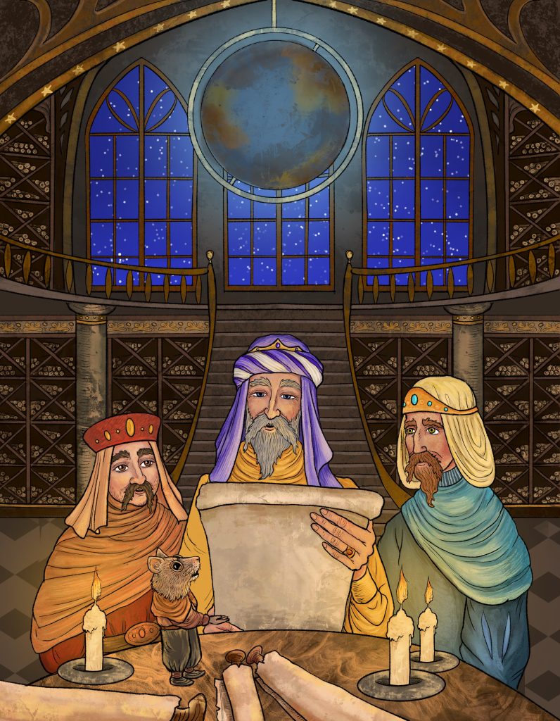 东方智者羿辰——亦即图书馆员伊森·老鼠——正忙得不可开交。他正翻找能为三位国王提供线索的古卷,指引他们寻找那位神秘新王的踪迹。