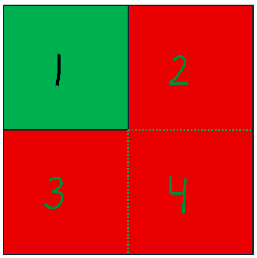 「说得对,卢卡斯!」西奥说。「计算比例需要运用数学。我们从四项测量数据开始:黄、蓝、红、绿四色正方形的边长。若换算面积也行。接着将四组数据分成两组:黄蓝组与红绿组。然后专注观察单组数据——我们看黄蓝组。