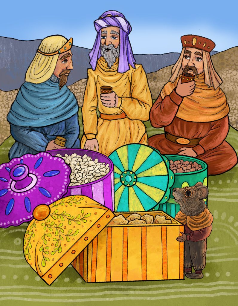 当我们与伊森展开故事时,请记住他们尚未抵达伯利恒,因此智者们尚未将礼物献给耶稣。但让我们倾听他们的对话,进一步了解三位智者选择这些礼物的缘由。」
