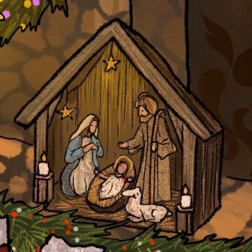 The Mouse family has 4 ancestors who were present during the Christmas Story over two thousand years ago. They are known as Nettie of Nazareth, Ethan (Yì Chén) of the East, Becca of Bethlehem, and Finn of the Fields. Much of the Christmas story is told through their eyes, and through their interactions with animals in the story including the donkey, the camels, and the sheep.